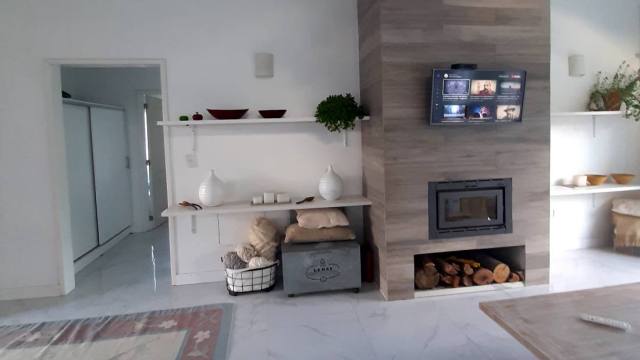 Casa de 77m2 sobre lote 1700m2, distribuida en una sola planta, con espacios amplios. Cocina completa con isla y barra integrada, moderno hogar a leña , gran dormitorio y baño en suite con vestidor.