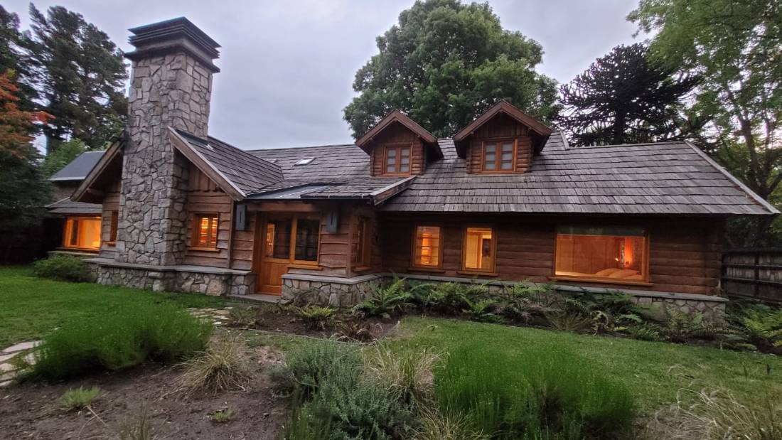 Exterior de rauli, lenga y pellin. Piso guatambu.Tejuelas de alerce,