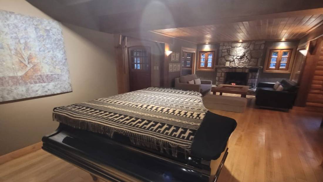 La maravilla de la naturaleza en tu casabr/> Amplio hall frio, living con hogar a leña, comedor, área de piano/bar .